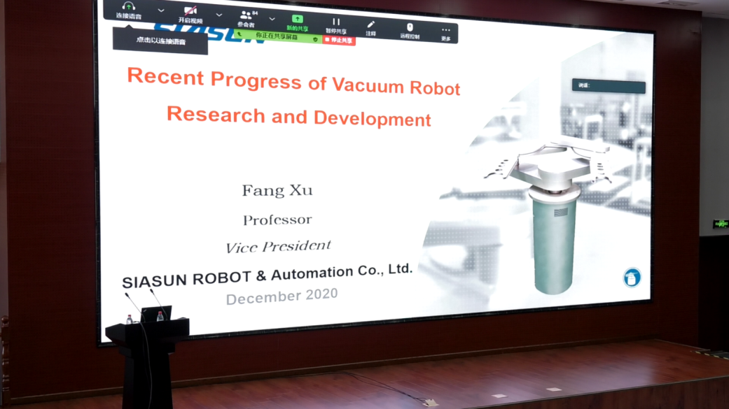 Fang Xu, Vice President of Shenyang SIASUN Robot & Automation Co., Ltd made a speech titled Recent Progress of Vacuum Robot Research and Development.