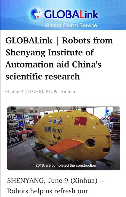 SHENYANG, June 9 (Xinhua) -- Robots help us refresh our understandings of the world. Follow Xinhua correspondent to the Shenyang Institute of Automation under the Chinese Academy of Sciences in northeast China's Liaoning Province. It is the place where China's first industrial robot prototype and the first unmanned underwater robot were created. These robots have made irreplaceable contributions to the development of China's scientific research