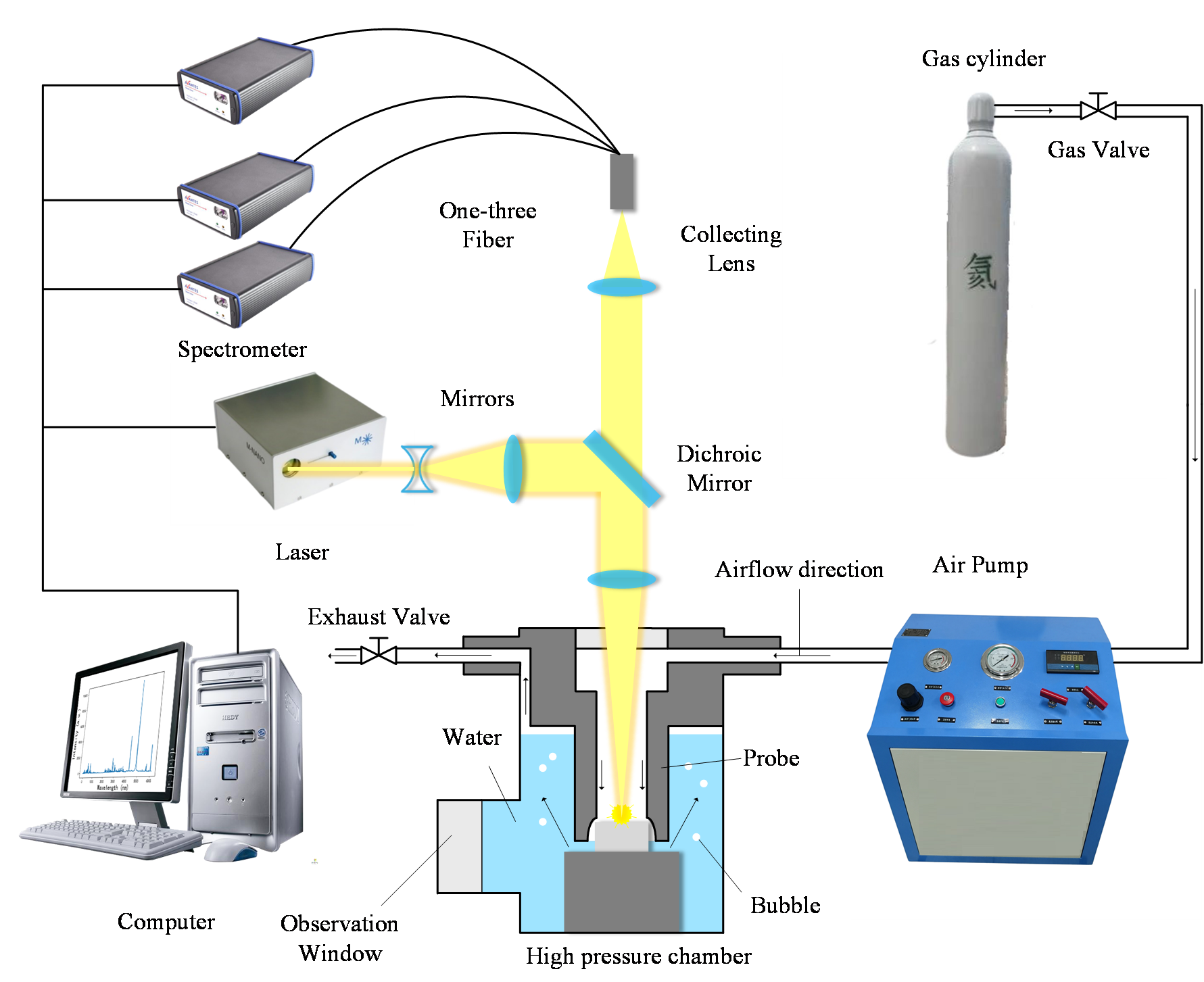 To solve this problem, the LIBS team from the Shenyang Institute of Automation, Chinese Academy of Sciences (SIACAS) proposed a method of injecting helium into the measuring probe, to create a gas environment in the deep-sea high-pressure water environment, which broke the bottleneck of difficult excitation of plasma signals in deep-sea high-pressure water.