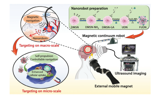 A research team from the Shenyang Institute of Automation (SIA), Chinese Academy of Sciences (CAS), in collaboration with Shengjing Hospital of China Medical University, developed a nanorobot-based marsupial robotic system that can enter the skull through a minimally invasive channel, bypass the blood?brain barrier to reach the glioma site, and accurately deliver drugs to the glioma lesion.