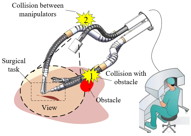 Continuum robot possesses active collision avoidance capability. When operating within the intricate environment of the human body's cavities, such medical robot can effectively prevent collisions between the robot itself and human tissues, or multiple robots. However, researchers still face the challenges caused by irregularity of the flexible structure of continuum robot and the complex nature of obstructive environments, in order to enhance robot’s active collision avoidance capability.