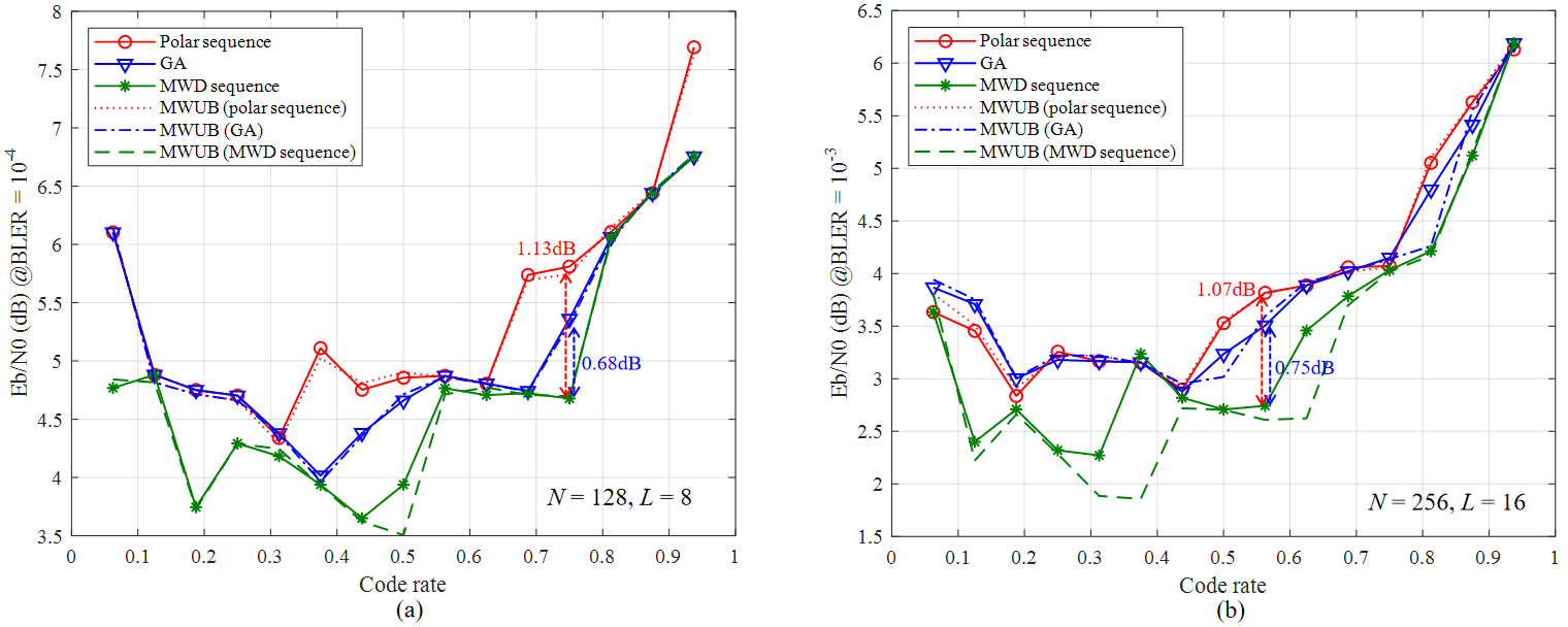To improve the block error rate (BLER) performance, the researchers proposed a method for the successive cancellation list (SCL) decoding by expanding candidate paths. Since polar codes demonstrate advantages in error performance, complexity and rate matching, they have been adopted as the coding scheme for the control channel of the enhanced Mobile Broadband (eMBB) service category in the fifth generation wireless communication systems (5G). In 5G, polar codes are constructed by a fixed universal polar sequence for all the code configurations by computer searching with the maximum polar sequence length 1024.