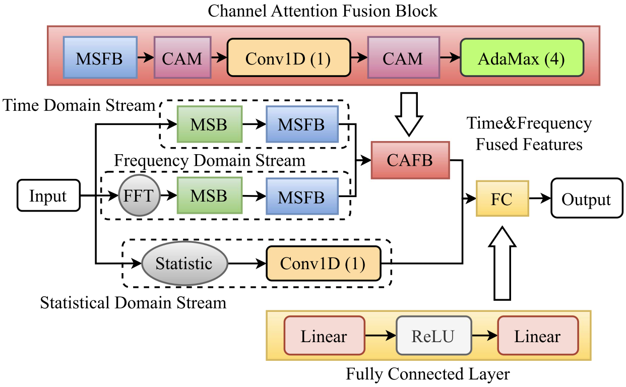 The network architecture handles the time domain, frequency domain and statistical features of vibration signals separately, and enables multi-sensor data fusion through an improved channel attention mechanism. In addition, the research team proposed two model-independent enhancement strategies for few-shot learning. One is, optimizing the sampling interval to reduce sample variance; the other is, maximizing inter-class separation by regularizing the loss function. These methods can effectively enhance the diagnostic accuracy of the model under few-shot conditions.