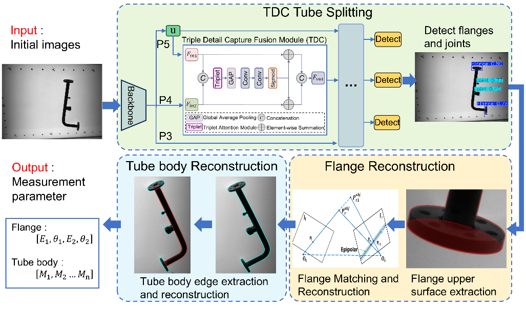 The research team established a complex tube segmentation model based on Triple Detail Feature Capture Fusion (TDC). The model achieves the fusion of multi-scale features through the TDC module, enhancing the ability to integrate contextual information and facilitate inter-dimensional information interaction, allowing the model to focus more on the flange and joint areas, thus achieving precise segmentation of these components.