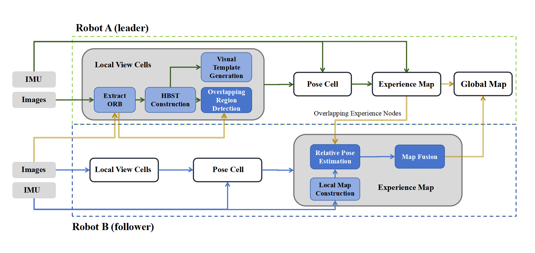 To address these challenges, a research team from the Robotics Laboratory at the Shenyang Institute of Automation(SIA), Chinese Academy of Sciences(CAS), has proposed a real-time collaborative mapping system to fuselocal experience maps into the global map. The team introduced an effective overlapping region detection based on sequencematching is designed to realize data association between local experience maps. To achieve the fusion of local experience maps, they developed a continuous map fusion graph relaxation (CMF-GR), which utilizes mutual pose relationships to construct a global experience map. Additionally, a leader-follower multi-robot architecture was designed to validate the proposed approach.