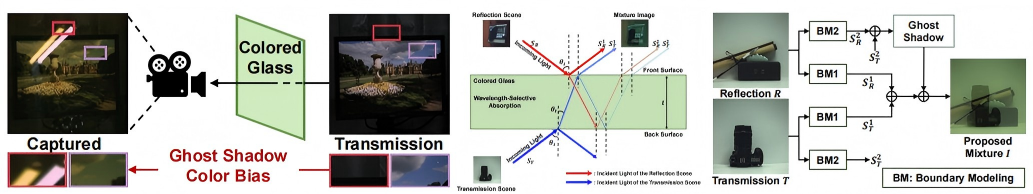 Photographs taken through colored glass often suffer from severe color casts and ghosting. Addressing this phenomenon, the research team considered the selective absorption of glass and identified the previously overlooked issue of colored glass degradation. Based on polarization imaging theory, they modeled the transmission of polarized light throughout the entire process for the first time, establishing a Polarization State Tracing Model (PSTM). They also proposed a physics-based window-based ring-channel attention mechanism.