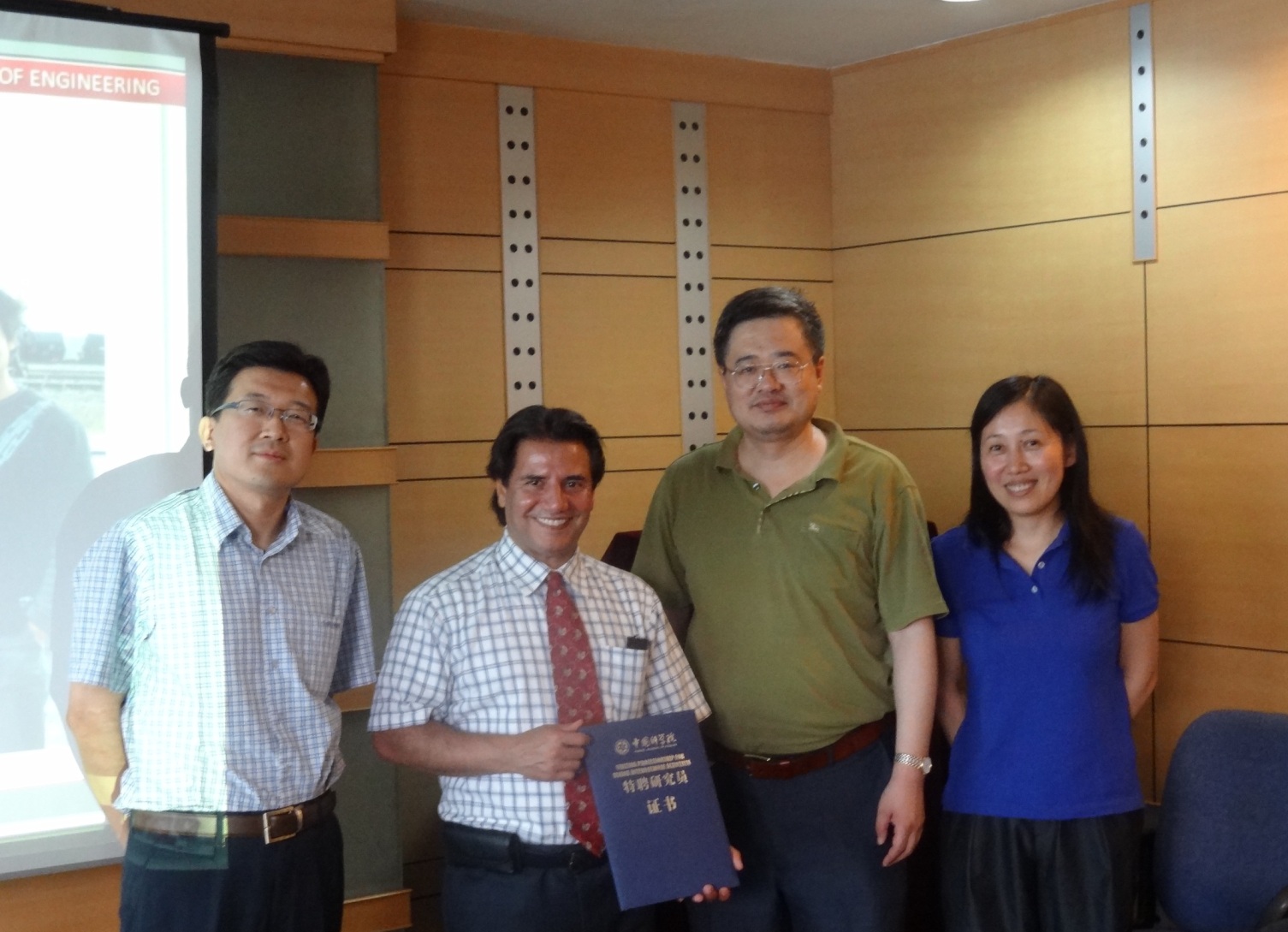 Prof. Yu Haibin (second from right), conferred the CAS Visiting Professorship Certificate to Prof. Humid Sharif (second from left). (Image/SIA)