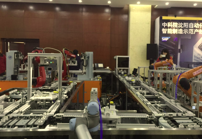 The national academy's Shenyang Institute of Automation and SAP unveiled a model of their jointly-developed intelligent assembly lines, which can help companies quickly produce tailor-made products by leveraging robots and software.